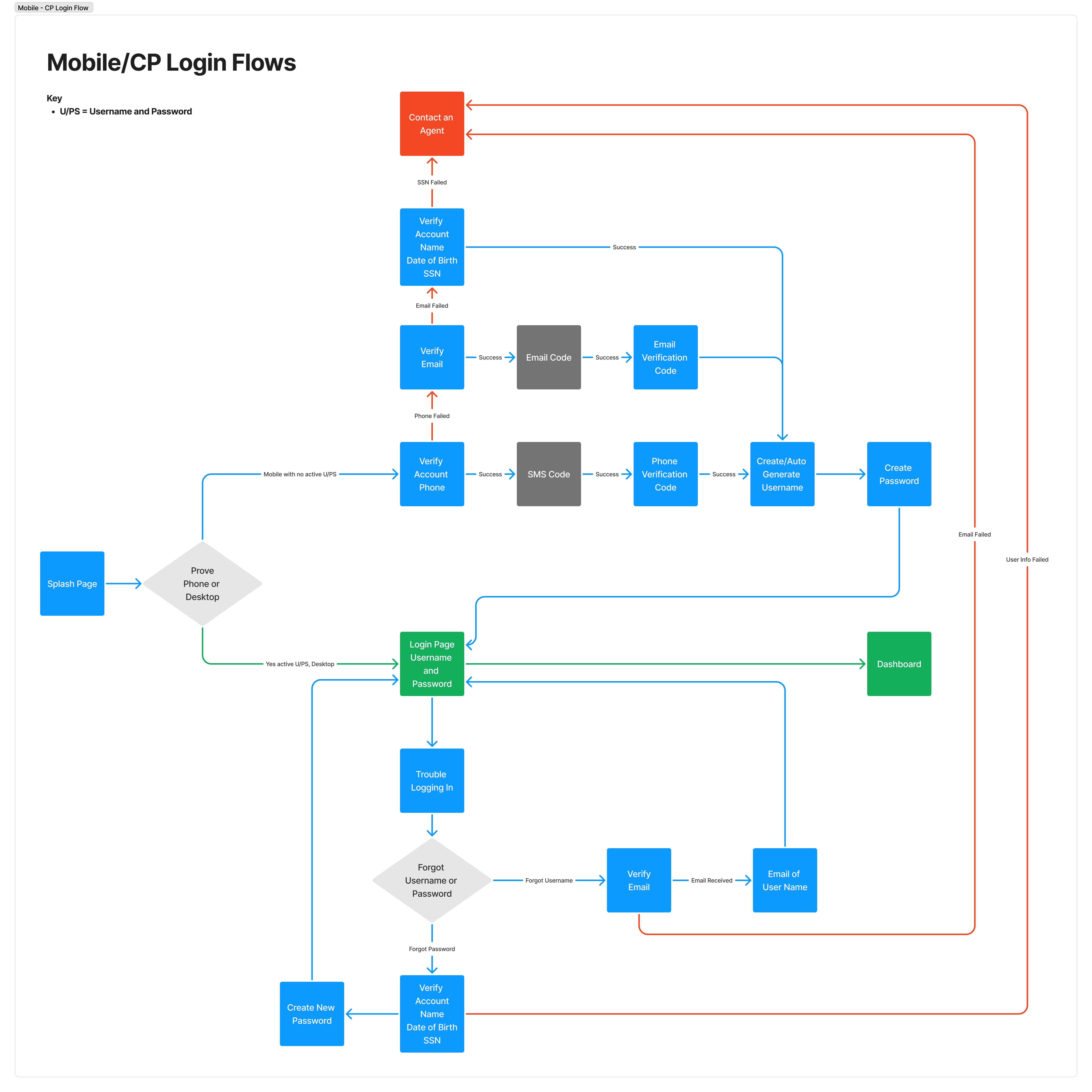 To support this new approach, I remapped all authentication scenarios, including first-time login, returning users, password recovery, and biometric setup. This ensured technical feasibility while maintaining consistent UX patterns across all states. Each path was documented and validated with engineering and QA for seamless implementation.