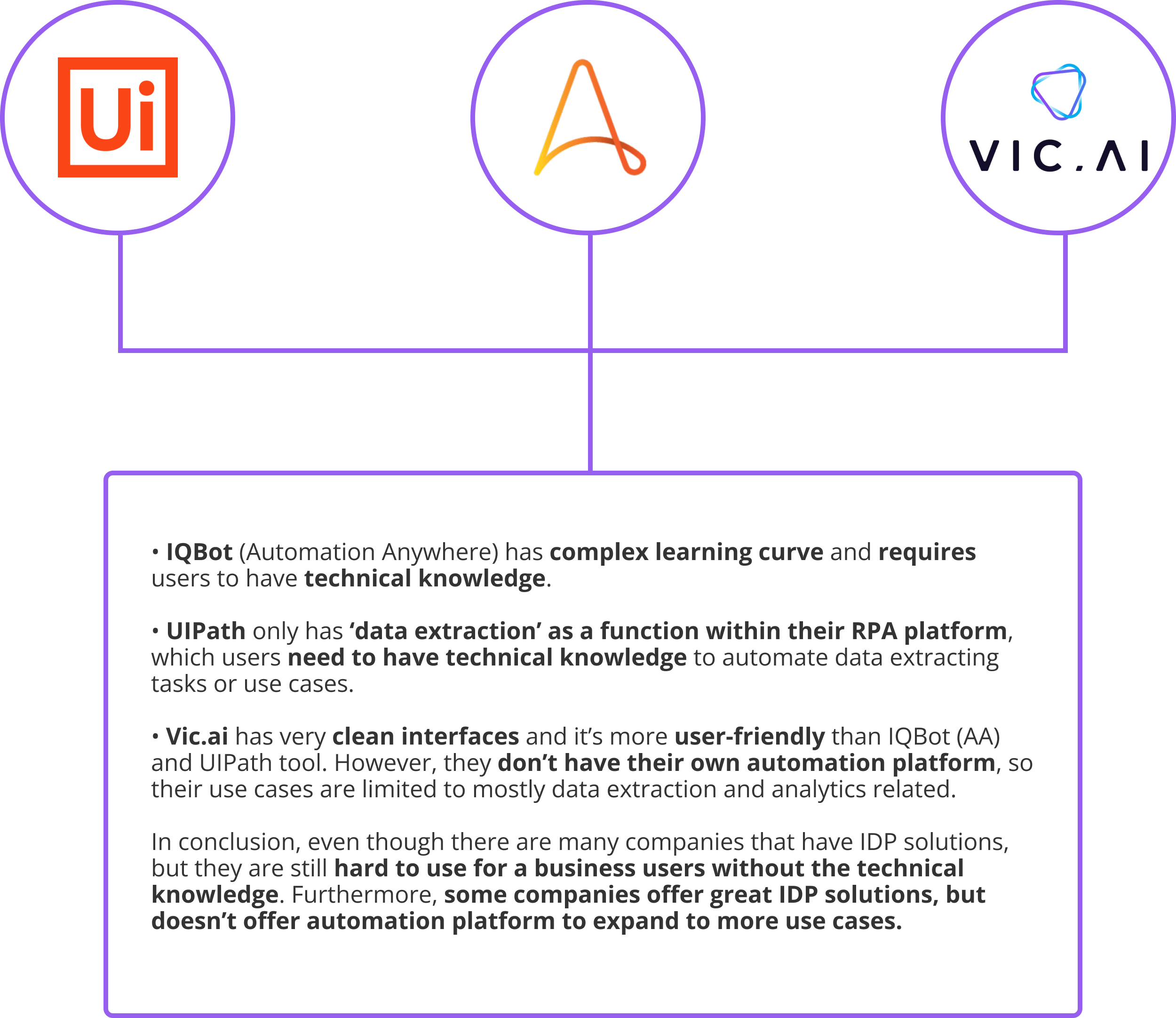 To define what “great” looked like, I collaborated with our Product Manager to study leading IDP products such as IQBot (Automation Anywhere), UiPath Data Extraction, and Vic.ai.